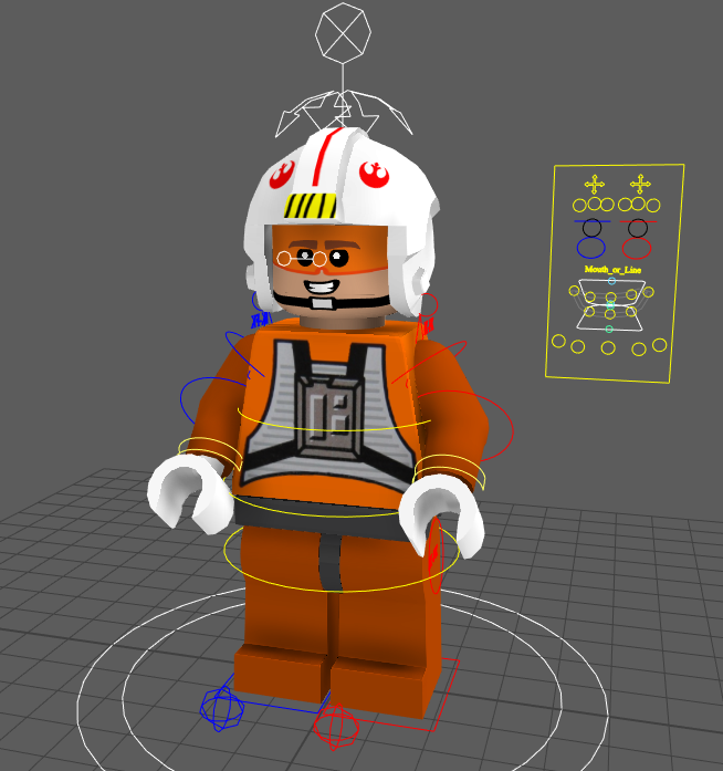 This is a flexible Lego mini figure rig that comes with controls for facial animations using geometry instead of typical texture static decals. The facial rigging system was used in this commercial spot: https://www.youtube.com/watch?v=nDCe5-tsE2Y&feature=youtu.be